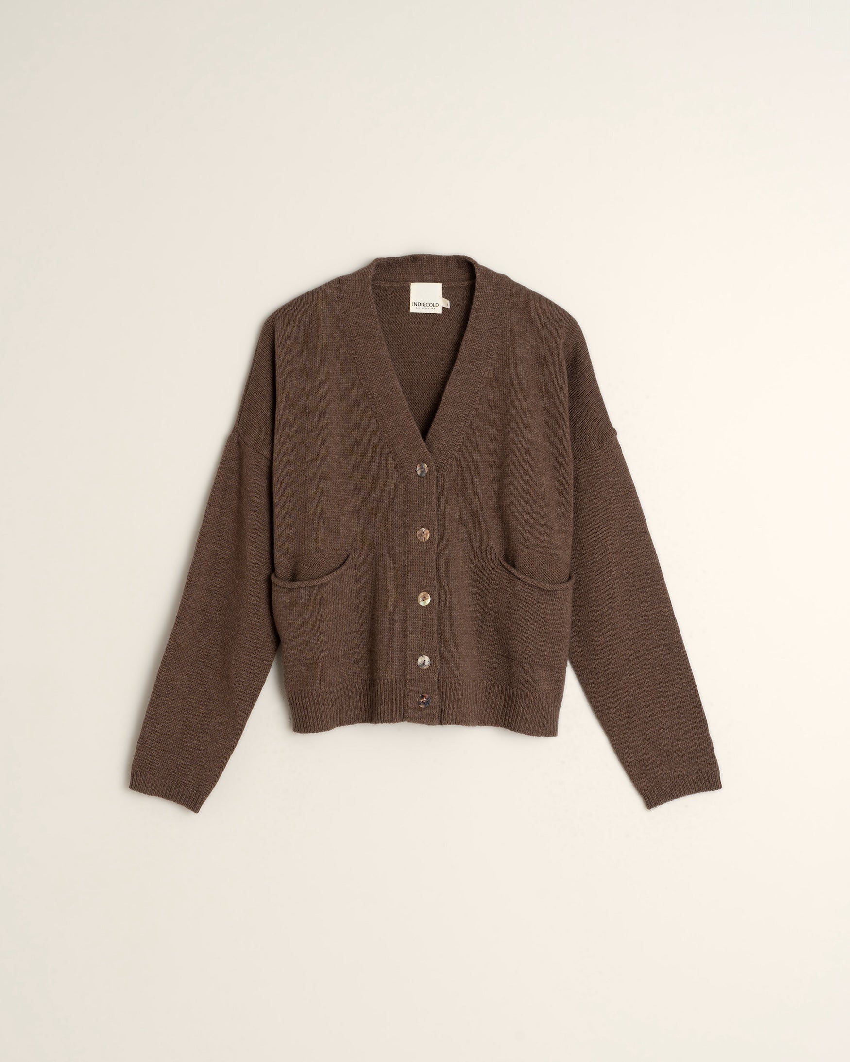 This knitted cardigan in wool and cashmere can be combined with everything. With a V-neckline and buttons in the middle, it has a relaxed, trendy fit.