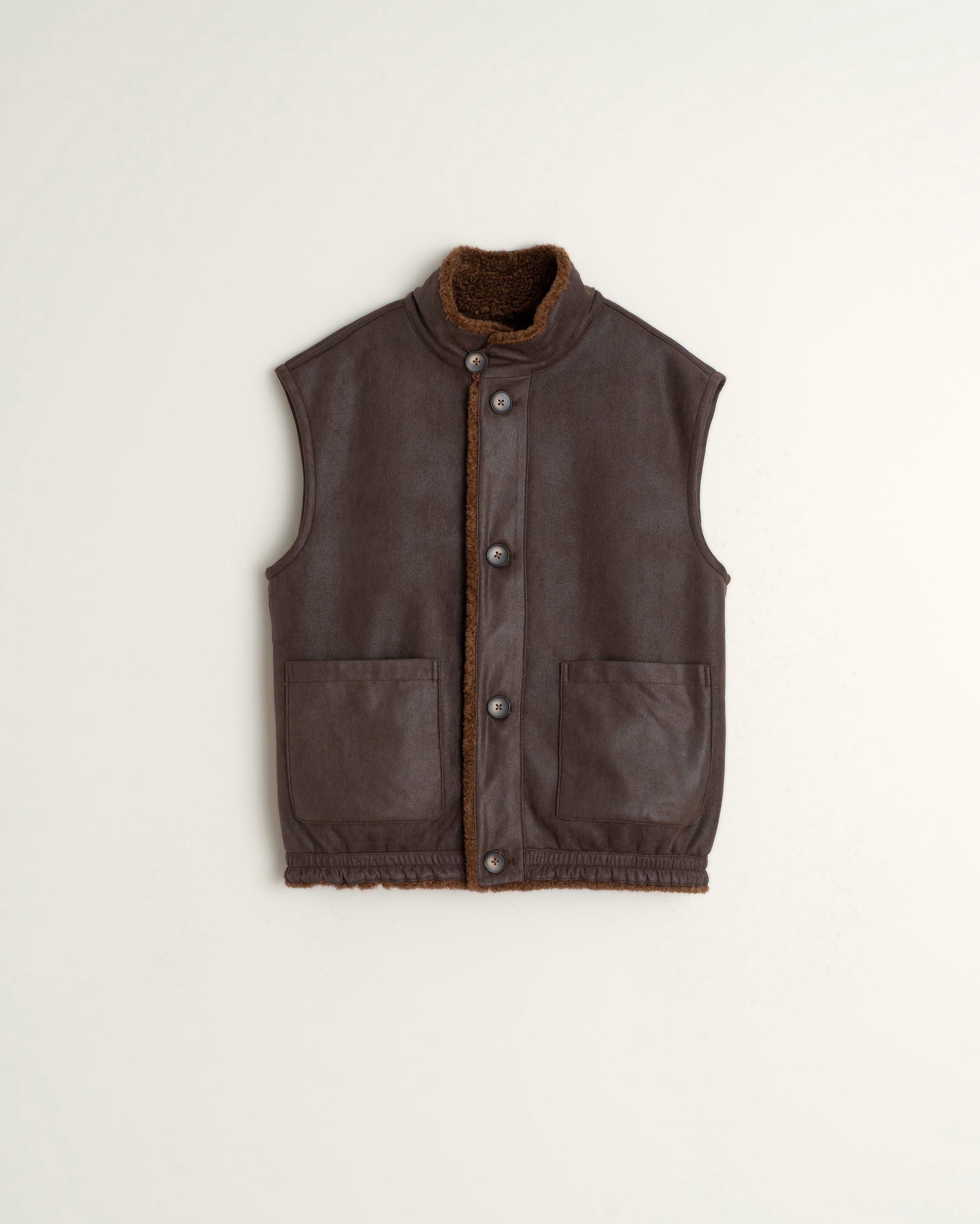 This reversible vest will help you play with your look. On one side, you'll find polished nubuck-style fabric; on the other, you have the teddy effect, even more comfy. It has an elastic waist, and you'll love its fit.